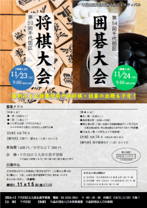 令和元年度の千代田区将棋・囲碁大会の出場者募集が始まりました。出場希望の方は、FAXかメールでお申込みください。